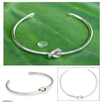 NOVICA Artisan Handmade Sterling Silver Cuff Bracelet No Stone Thailand [5.5 in L (end to End) x 0.4 in W] ' Love Knot'