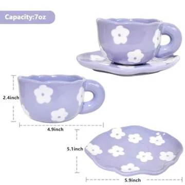 Show moreIntroducing the Noviko Purple Coffee Mug Flower Mug and Saucer Set, an enchanting addition to your kitchen that effortlessly combines elegance and functionality. Crafted from high-quality, durable ceramic, this lovely mug is not only lead-free but also built to withstand the rigors of daily use. Whether you prefer a rich espresso, soothing herbal tea, frothy cappuccino, or even a comforting cup of hot chocolate, this 7 oz mug is your perfect companion. Emitting a vibrant purple hue adorned with delightful floral patterns, it is specifically designed to bring joy to your coffee breaks and tea time. Plus, it's dishwasher and microwave safe, making it as practical as it is beautiful.