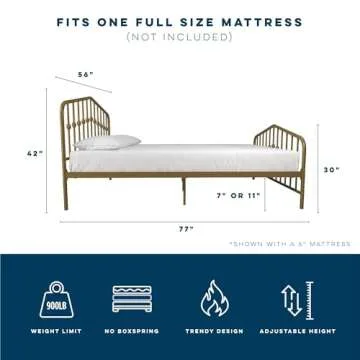 Novogratz Bushwick Metal Bed with Headboard and Footboard | Modern Design | Full Size - Gold