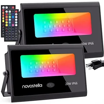 Show more Introducing the Versatile Novostella 2 Pack 20W RGB LED Flood Lights – your go-to solution for transforming any environment with vibrant colors and adaptive lighting effects. Designed to elevate both indoor and outdoor settings, these floodlights offer an impressive array of 20 dazzling colors combined with 6 intuitive lighting modes. Whether you want to create a relaxed mood or ignite a festive atmosphere, experience unmatched flexibility with just the touch of a button using the included 44-Key remote. Perfect for parties, celebrations, or quiet evenings at home, these floodlights will light up your life in more ways than one.