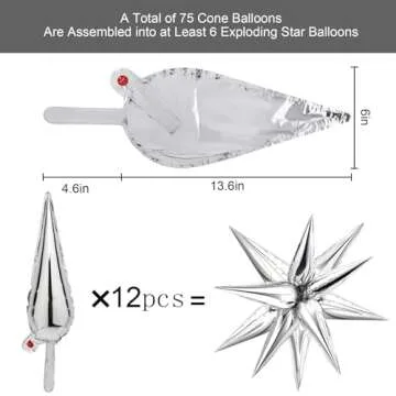 You can create up to six explosion star balloons with the 72 foil cone balloons included in the package.