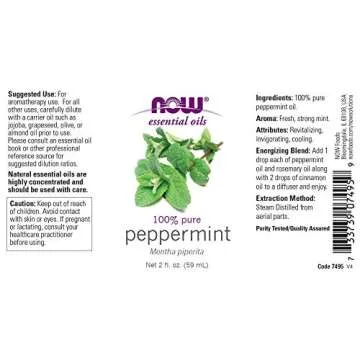 NOW Essential Oils, Peppermint Oil, Invigorating Aromatherapy Scent, Steam Distilled, 100% Pure, Vegan, Child Resistant Cap, 2-Ounce