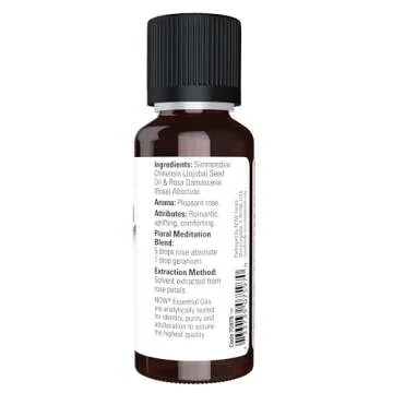 NOW Essential Oils, Rose Absolute, 5% Blend of Pure Rose Absolute Oil in Pure Jojoba Oil, Romantic Aromatherapy Scent, Vegan, Child Resistant Cap, 1-Ounce