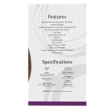 NOW Foods Essential Oils, Ultrasonic Faux Wood Aromatherapy Oil Diffuser, Contemporary Design, Extremely Quiet Heat Free, Color Changing LED Diffuser
