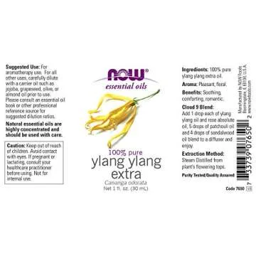 NOW Foods Essential Oils, Ylang Ylang Extra Oil, Comforting Aromatherapy Scent, Steam Distilled, 100% Pure, Vegan, Child Resistant Cap, 1-Ounce