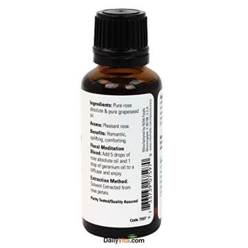 One of the standout features of our Rose Essential Oil is that it is meticulously extracted to maintain the natural essence of roses without any synthetic additives. This means you can indulge in the sweet and calming aroma without the worry of harsh chemicals. Additionally, it blends seamlessly with carrier oils, such as fractionated coconut oil, making it perfect for skin application. Now Foods has built a solid reputation for delivering quality products at reasonable prices, and this rose oil is no exception.