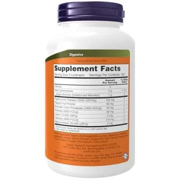 NOW Foods Supplements, Papaya Enzyme with Mint and Chlorophyll, Digestive Support*, 360 Chewable Lozenges