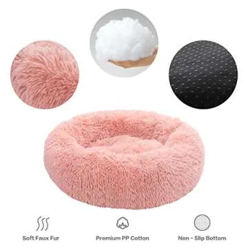 Show moreIntroduce your furry friend to the ultimate comfort haven with the NOYAL Calming Dog Bed Donut! Designed specifically for small to medium dogs and cats, this inviting donut-shaped bed combines style and comfort to soothe anxious pets and promote restful sleep. Made with luxurious faux shag fur, the raised rim creates a cozy, secure atmosphere that mimics your pet's natural burrowing instincts. With an emphasis on quality construction, this bed not only provides warmth but also offers a plush experience for your beloved companion, ensuring they enjoy every nap or restful night sleep in complete serenity.