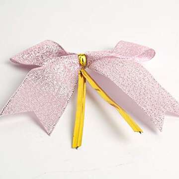 Show moreIntroducing the NOYI TRAXD 50 Piece Twist Tie Bows Ribbon in glamorous Pink! These exquisite twist tie bows are not just aesthetically pleasing, they are also incredibly functional. Each bow measures 1 inch, making them perfect for a variety of uses, from gift wrapping to party decorations. Crafted with premium materials, the metallic silver and gold accents provide a luxurious touch that enhances the overall presentation of your gifts or decorations. Whether you're planning a birthday celebration, a wedding, or simply adding elegance to your home decor, these twist ties ensure that your gifts are wrapped with style. With 50 pieces in each pack, you’ll have more than enough to cover all your decorating and gift-giving needs!