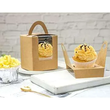 Show moreIntroducing the NPLUX Cupcake Boxes, the perfect solution for anyone looking to elevate their gifting experience while ensuring their baked goods are safely packaged. With 60 beautifully designed kraft cupcake boxes that include matching inserts, you can effortlessly create stunning presentations for your delectable treats. Each box is constructed from durable, food-grade cardboard, ensuring that your cupcakes remain secure and in pristine condition. Not only are they designed for cupcakes, but these versatile boxes can also accommodate small cakes, pies, pastries, donuts, and cookies, making them an essential addition to any baker's toolkit. Measuring 3.6 inches in length, 3.6 inches in width, and 4.5 inches in height, they are spacious enough for standard-sized cupcakes, ensuring your generous portions impress your guests. The clear window on both the front and top allows for a delightful peek at the treats inside, elevating the appeal and anticipation of your baked goods.