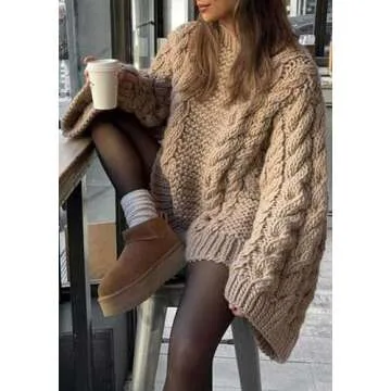 NRTHYE Women's Oversized Cable Knit Sweater Tops Loose Long Sleeves Crewneck Chunky Slouchy Baggy Pullover Sweaters