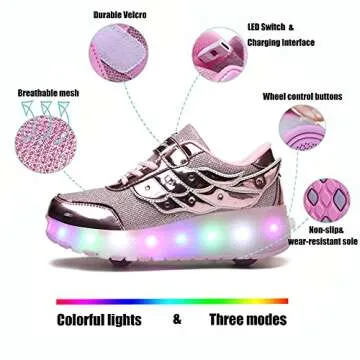 But the fun doesn't stop there; these innovative shoes feature a clever 2-in-1 design. With two wheels, they emulate the feel of inline skates, promoting a sense of freedom and thrill. The first wheel can be easily removed, transforming the skate shoes into conventional sport shoes! A simple button press at the heels allows the back wheel to hide away, offering practicality and versatility for all types of play.