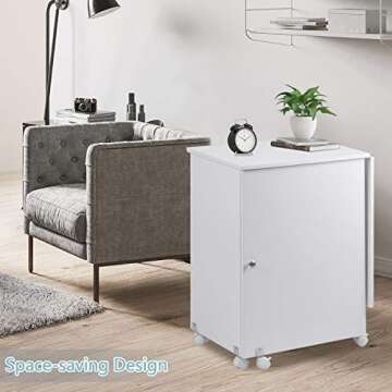 NSdirect Sewing Table, Folding Sewing Craft Cart&Sewing Cabinet Miscellaneous Sewing Kit Art Desk with Storage Shelves and Lockable Casters,(White)