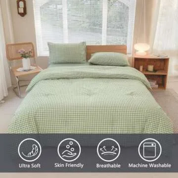 NSNLGSGC Queen Comforter Set, Sage Green Gingham Bedding Comforter Sets, Green Grid Bed Comforter 3 Pieces (1 Comforter, 2 Pillowcases)