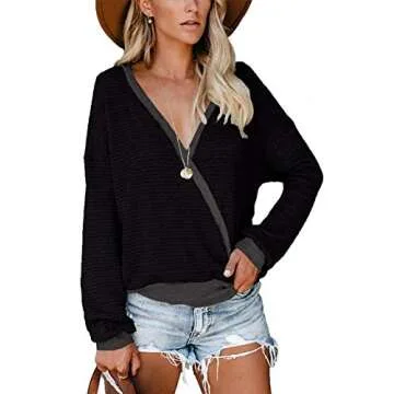 NSQTBA Wrap Tops for Women: Stylish V Neck Long Sleeve Sweater