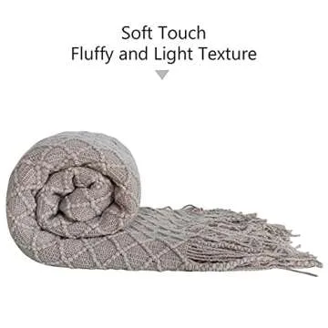 NTBAY Acrylic Knitted Throw Blanket, Lightweight and Soft Cozy Decorative Woven Blanket with Tassels for Travel, Couch, Bed, Sofa, 51x67 Inches, Taupe Checkered
