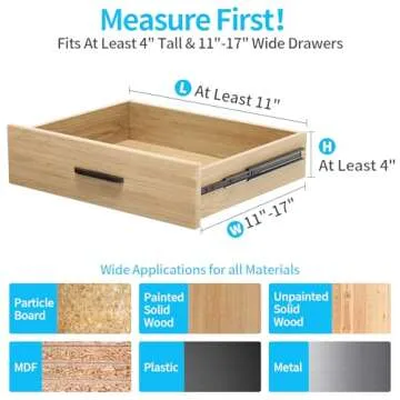 Show moreThe NTQNOIKA Drawer Dividers Organizer 6 Pack is your essential tool for transforming cluttered drawers into organized spaces. Crafted from high-quality ABS material, these dividers are built to last and can expand from 11 to 17 inches long while standing at a sturdy 4 inches high. Their innovative design features a strong spring-loaded tension mechanism that securely locks each divider in place, ensuring they remain upright and effectively manage your belongings. Whether you need to organize clothes in your bedroom, utensils in your kitchen, or office supplies, these dividers can be easily adjusted to meet your specific storage needs.