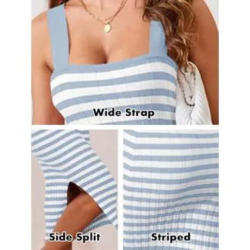 Show more Introducing the NTSWZYS Women's Sleeveless Striped Knit Bodycon Midi Dress, where style meets comfort in a blend of chic design and functional fabric. This square neck, sleeveless dress is made from a soft and breathable mix of 60% cotton, 28% viscose, and 12% nylon, ensuring you stay cool while making a fashion statement. Designed to accentuate your natural curves, this dress features a slim-fit silhouette that delicately wraps your body, showcasing your collarbone and enhancing your figure beautifully. The midi length and trendy striped pattern create a sophisticated yet playful look, making it ideal for any occasion—from a beach retreat to a formal gathering.