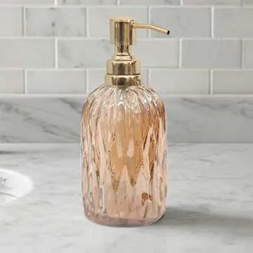 nu steel GLA328C-6 Glacier Collection Glass Finish Trim Refillable Dispenser Pump Bottle for Bathroom Vanity Countertop-Holds Lotion, Liquid Soap, Hand Sanitizer, Amber Gold
