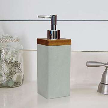 nu steel Nusteel Concrete, Made of Cement Refillable Dispenser Pump Bottle for Bathroom Vanity Countertop, Kitchen-Holds Oils, Lotions, Liquid Soap, Sanitizer, Grey Stone/Brown