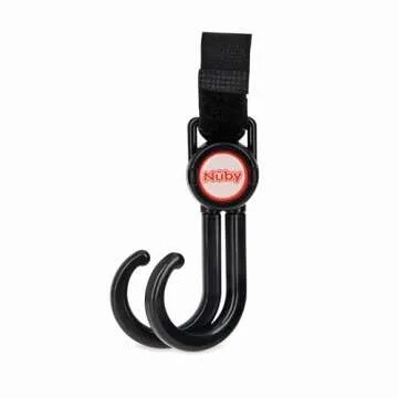 Nuby 2-in-1 Deluxe Adjustable Baby Stroller & Car Seat Hooks for Hanging Bags, Toys- Hang or Remove Items from Hooks with one Hand/ 2 Pack – 8 Pack, Black