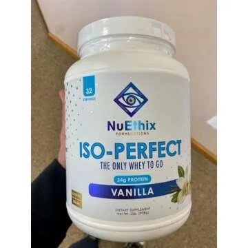 NuEthix Formulations Iso-Perfect Whey Protein Isolate Powder with 24g Protein, Naturally Sweetened with Stevia, Vanilla, 32 Servings