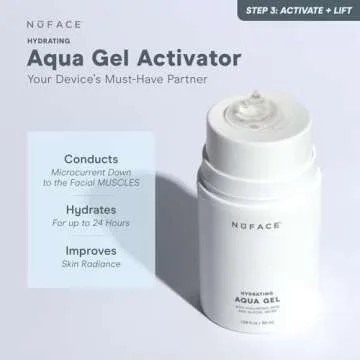 Show more The NuFACE Aqua Gel is an essential companion for anyone looking to enhance their microcurrent skincare routine. This lightweight activator gel is meticulously designed to lock in hydration for up to 24 hours, ensuring your skin remains moisturized and radiant throughout the day. Its innovative formulation effectively conducts microcurrent from your face toning device down to your facial muscles, maximizing the results of your mini, Trinity, MINI+, TRINITY+, and NuBODY devices.