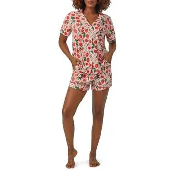 NUFIWI Women Cute Print Pajamas Lounge Sets 2Piece Pj Shorts Set Fruits Printed Y2k Short Sleeve Button Down Sleepwear(Strawberry Pink Red,M)
