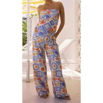 Show more Introducing the NUFIWI Women Graffiti Print Scarf Top and Pants Sets, the ultimate blend of style and comfort for the modern woman! This two-piece outfit is skillfully crafted from a premium cotton blend, ensuring a soft, breathable, and lightweight experience that feels as good as it looks. Designed for sunny escapades or casual outings, it features a trendy off-shoulder camisole adorned with vibrant fruit and floral graffiti prints, paired seamlessly with wide-leg pants for an effortlessly chic silhouette. Embrace your inner fashionista while staying comfortable!