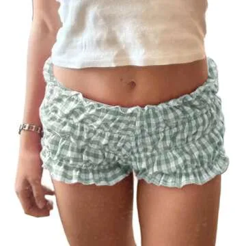 NUFIWI Women Lounge Shorts Gingham Plaid Print Y2k Low Rise Sexy Micro Shorts