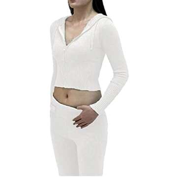 Introducing the NUFIWI Women Ribbed Knit 2 Piece Outfits Set, a chic and contemporary addition to your wardrobe that allows for freedom of movement while ensuring you stay on-trend. Made from a premium blend of polyester fiber, this set is designed to be soft, breathable, lightweight, and skin-friendly, making it incredibly comfortable for all-day wear. The standout features of this outfit include a cozy hooded sweatshirt with a full zipper...