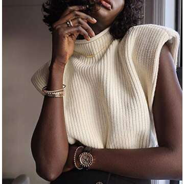 Show more Introducing the ultimate addition to any trendy woman's wardrobe: our stylish, loose knitted vest designed to provide a perfect mix of comfort and chic fashion. Crafted from high-quality knitted material, this vest boasts a soft touch that feels delightful against the skin, making it an essential piece for any season. With a unique ribbed stitch design and turtleneck style, it is perfect for layering over your favorite tops, adding a touch of elegance to everyday outfits.