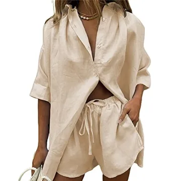 NUFIWI Women's Summer Casual 2 Piece Outfits Set Short Sleeve Collar Button T-Shirt Top Bodycon Shorts Set Y2K Streetwear