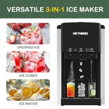 Show moreIntroducing the **Nugget Ice Makers Countertop**, a **3-in-1 ice machine** that transforms your beverage experience with unmatched convenience and speed. This innovative appliance is not just an ice maker; it effortlessly produces **nugget ice**, crushes ice, and dispenses chilled water – making it a versatile companion for parties, daily use, and everything in between. With a sleek design and compact dimensions of **11'' x 17'' x 19''**, this unit fits seamlessly into any kitchen, office, or even RV, ensuring you always enjoy refreshing iced drinks at your fingertips.