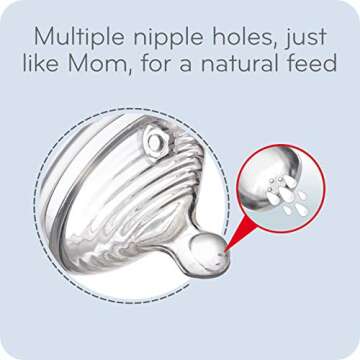 Each bottle comes in two sizes: a compact 5-oz. bottle that boasts a slow flow nipple with 3 holes, perfect for newborns, and a larger 9-oz. bottle featuring a medium flow nipple with 6 holes for growing babies. The nipples are flexible and designed to move with your baby’s natural latch, promoting a continuous feeding experience without fuss.