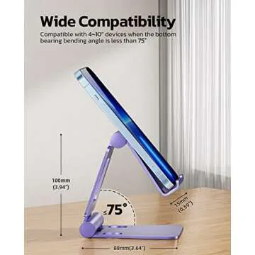 Nulaxy Dual Folding Cell Phone Stand, Fully Adjustable Foldable Desktop Phone Holder Cradle Dock Compatible with Phone 16 15 14 13 12 11 Pro Xs Xs Max Xr X 8, Nintendo Switch, All Phones - Purple