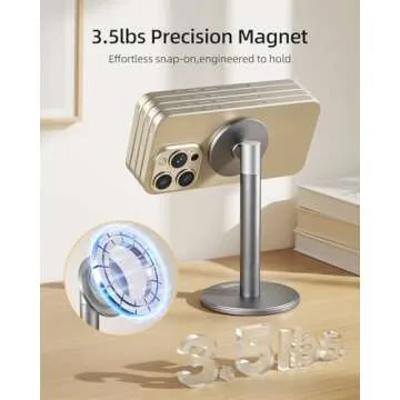 Show more Introducing the Nulaxy Magnetic Full Aluminum Cell Phone Stand – your ultimate desk companion designed to elevate your device experience! Crafted from heavy-duty aluminum alloy, this stand is not just about aesthetics but also engineered for stability and durability. Weighing in at 7.76oz, it ensures a secure grip, holding up to 3.5 lbs effortlessly, making it perfect for any smartphone, especially the iPhone 13-16 Pro Max series. The standout feature is its super-strong magnetic stability that keeps your phone safe and secure, even during intense usage. Say goodbye to wobbly stands and embrace reliability!