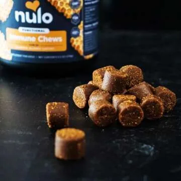Show more Introducing the Nulo Functional Immune Dog Supplement, a comprehensive solution designed to bolster your furry friend's immune system and support their overall health. This unique formula combines the power of Dried Bovine Colostrum with specialized Pre, Pro, and Post-Biotics, ensuring that your pet not only enjoys a robust immune defense but also benefits from natural detoxification processes. Each soft chew is scientifically crafted in collaboration with veterinarians and nutritionists, ensuring a product that meets the highest standards of pet health. With ingredients like Krill Oil, Organic Turmeric, Bee Pollen, and Apple Cider Vinegar, these delicious treats are a tasty and beneficial addition to your pet's diet.