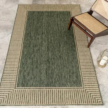Show moreIntroducing the nuLOOM 5' x 8' Outdoor Area Rug—your perfect companion for breathing new life into your spaces! Crafted from 90% Polypropylene and 10% Polyester, this stunning rug blends durability and style effortlessly. Its exceptional power-loomed construction ensures it can withstand the rigors of daily life, making it an ideal choice for any busy household. Whether your style leans towards casual sophistication or modern elegance, this rug adapts seamlessly, providing a lush foundation for your patio, balcony, or living room. With its deep, dark green tone and classy striped border, it promises to create a serene oasis right at home.