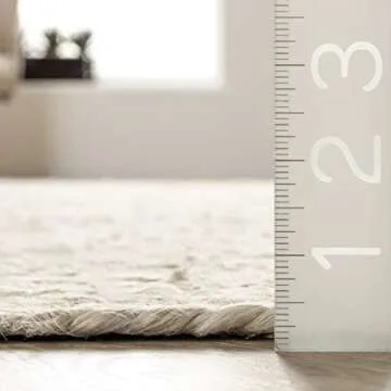 Show moreTransform your space with the nuLOOM 5x8 Rigo Jute Hand Woven Area Rug, a stunning addition to any room that reflects both elegance and functionality. Crafted from 100% natural jute, this gorgeous rug is designed to elevate the aesthetic of your living room, dining area, or home office while offering an eco-friendly solution for your home decor. With its off-white hue and solid farmhouse design, this rug seamlessly blends with various interior styles, from rustic to modern.
