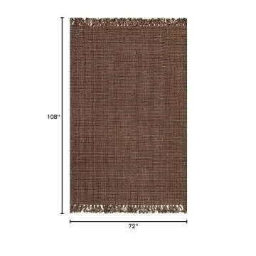 nuLOOM 6x9 Daniela Jute Tassel Hand Woven Area Rug, Chocolate, Solid Chunky Farmhouse Design, Natural Fiber, For Bedroom, Dining Room, Living Room, Hallway, Office, Entryway