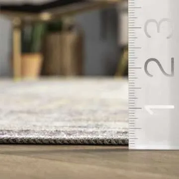nuLOOM Glenda Machine Washable Faded Medallion Ultra Thin Area Rug, 8x10, Light Grey