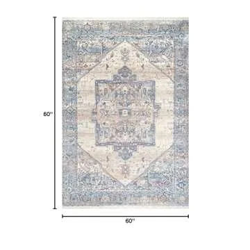 nuLOOM Harriet Vintage Medallion Fringe Area Rug - 5 Square Area Rug Traditional Light Blue/Multicolor Rugs for Living Room Bedroom Dining Room Kitchen