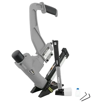 Show moreIntroducing the 3-in-1 Flooring Nailer / Stapler by NuMax, the ultimate tool designed specifically for the installation of tongue and groove hardwood flooring. This versatile tool combines the functionality of nailing and stapling into a single, powerful unit, allowing you to save both time and money on your flooring projects. Capable of using 16 gauge T-cleats and L-cleats as well as 15.5 gauge 1/2-inch crown staples from 1-1/2 inch to 2 inches long, this nailer is designed to handle all three types of fasteners seamlessly. Built with a high-strength yet lightweight aluminum body, and heat-treated steel parts, it delivers durability while remaining easy to handle. The ergonomic handle enhances comfort, reducing fatigue during those extended work shifts, making it ideal for both novice and professional installers.