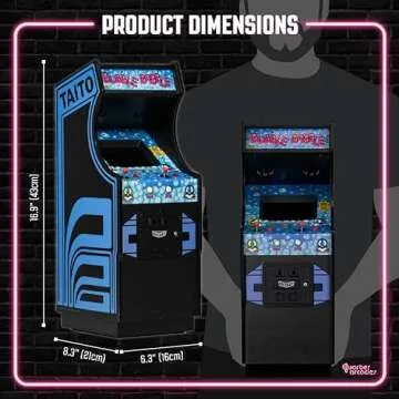 Show more Introducing the Numskull Quarter Arcades Bubble Bobble Collector's Edition Mini Arcade — a beautifully crafted 1/4 scale wooden replica that brings nostalgia-filled memories back to life. Fully licensed by Taito, this arcade cabinet is more than just a collector’s item; it's a piece of gaming history that fits perfectly into your home or office. Measuring at an impressive 17 inches tall, this mini arcade is designed to thrill retro enthusiasts. The authentic gameplay, featuring the original Bubble Bobble arcade ROM, immerses you in the classic gaming experience that has captivated players for decades.