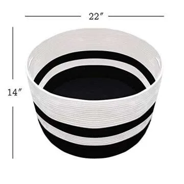 Numyton Extra Large Laundry Basket - Large Storage Basket for Blanket - 22" x22"x 14" - Woven Cotton Rope Basket - for Blankets, Toys, Towels, Clothes - White and Black