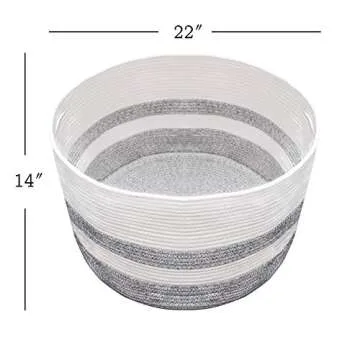 Numyton Extra Large Laundry Basket - Large Storage Basket for Blanket - 22" x22"x 14" - Woven Cotton Rope Basket - for Blankets, Toys, Towels, Clothes - White and Grey
