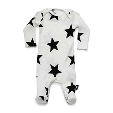 NUNUNU Baby Footed Overall Long Sleeve 100% Cotton Unisex White Stars