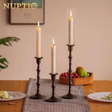 Why You Will Love This Product: Not only do the Nuptio Black Candlestick Holders add a sophisticated touch to your living spaces, but they also enhance the atmosphere of any gathering. Imagine the warm glow of candlelight, elevating romantic dinners or festive celebrations. The intricate vintage design and quality craftsmanship create a stunning backdrop for your cherished moments. Transform your everyday settings into remarkable experiences with these exquisite candle holders that embody elegance and charm, and they are sure to impress your guests.