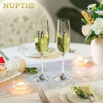 NUPTIO Crystal Champagne Flutes Glasses: Set of 2 Wedding Champagne Glass with Wooden Gift Box Mr & Mrs Toasting Flute for Bride Groom Engagement 50th Anniversary Birthday Party